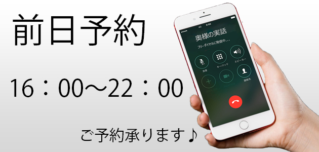 【前日予約は16時~♪】
